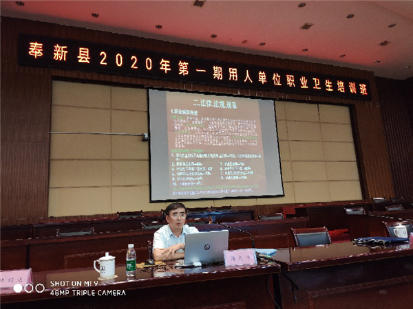 2020年8月1日,湯光華總經理在奉新縣,參加“奉新縣2020年第 一期用人單位職業(yè)衛(wèi)生培訓班”,為奉新縣的用人單位負責人培訓職業(yè)衛(wèi)生相關知識。